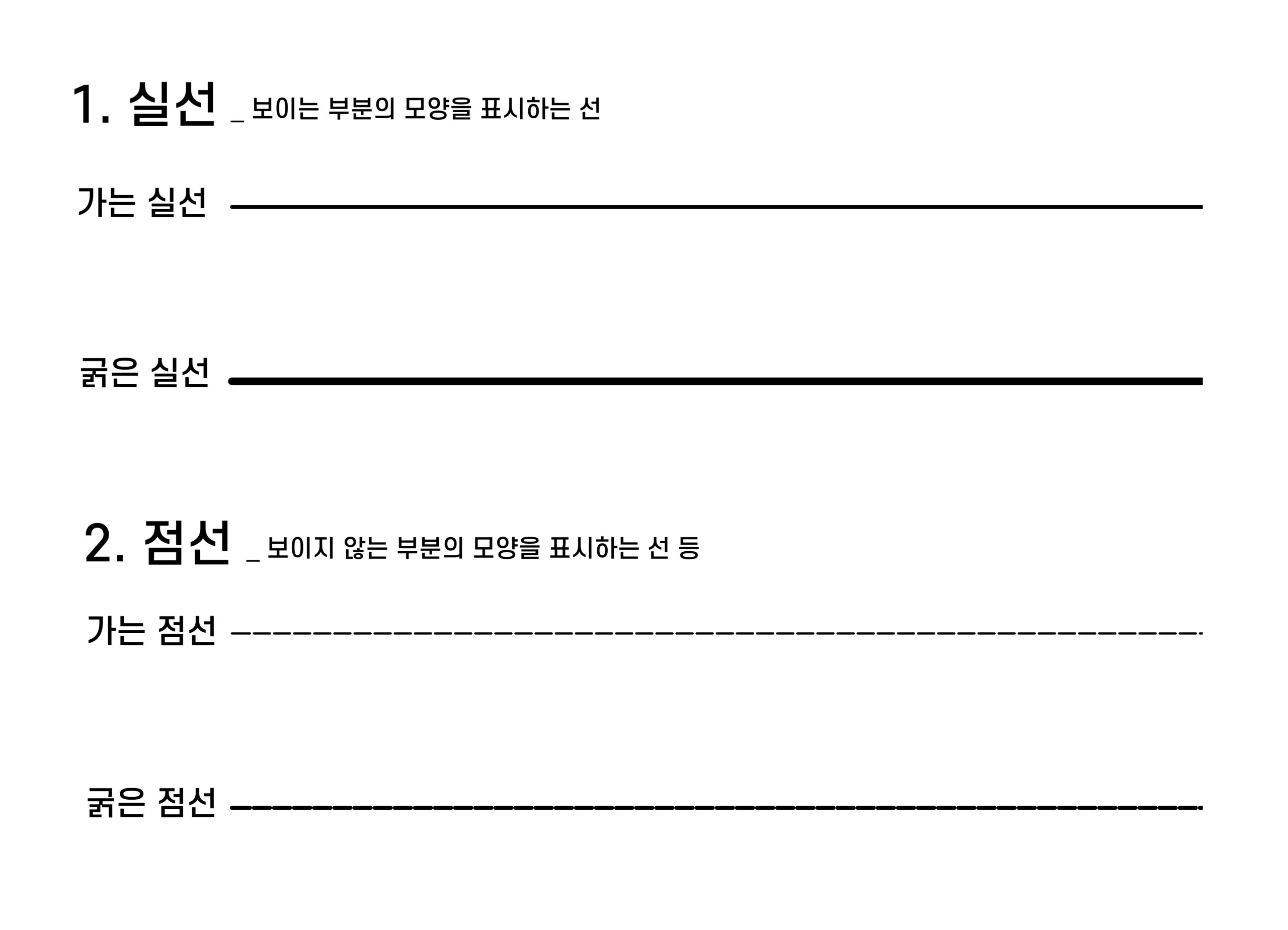 (2) 선의 유형(실선, 파선, 점선, 쇄선)