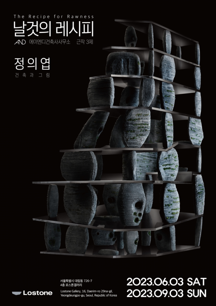 최근 준공한 로스톤 갤러리에서 ‘날것의 레시피‘라는 주제로 정의엽 건축가의 세 개의 건축 작품 ‘Melting House’, ‘Meatbox’, ‘Lostone’에 대한 그림과 건축전시를 진행합니다. 전시와 더불어 로스톤 카페 전체 공간도 함께 둘러볼 수 있습니다.