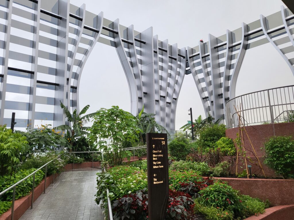 19층까지 올라간 후 51층 옥상정원으로 향했으나 51층 옥상정원은 안전상의 문제로 소나기가 내리면 입장이 불가합니다. 싱가포르는 우기 때 소나기가 자주 내리기 때문에 하루에도 몇 번씩 입장이 불가하기도 합니다. 그래서 옥상정원은 3분도 구경하지 못한 채 내려오게 되었습니다.