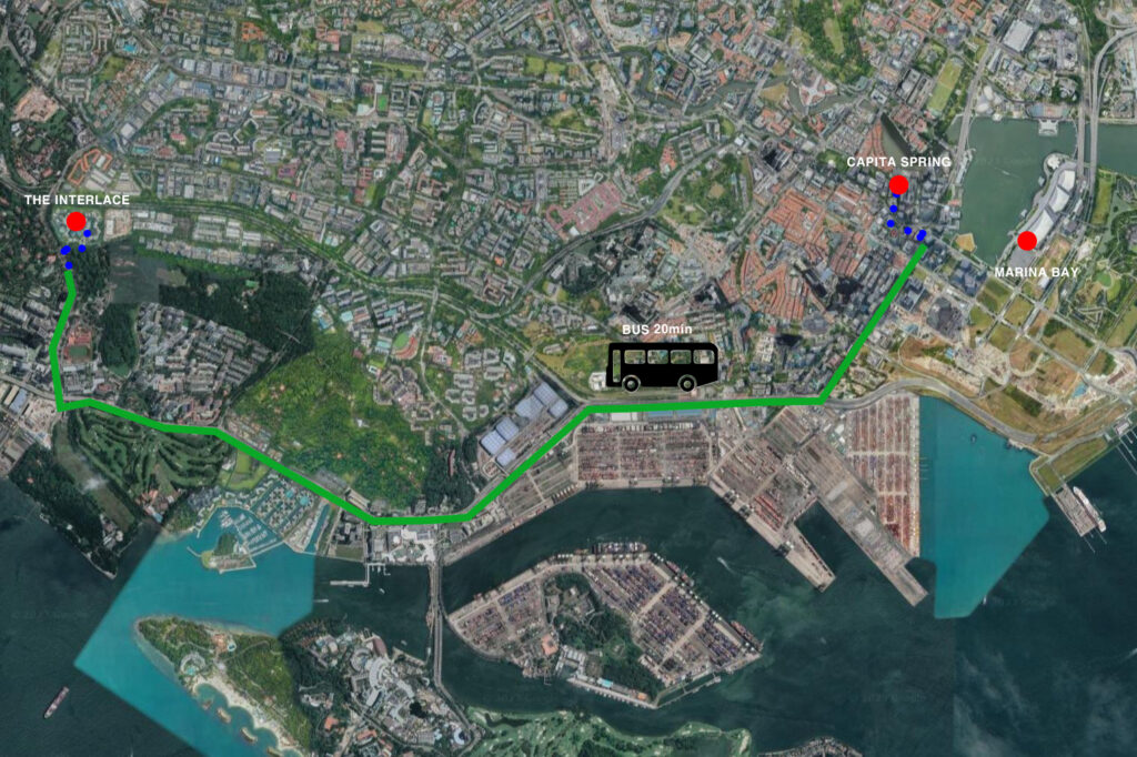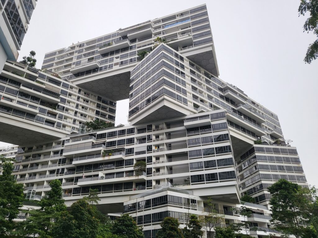두 번째로 가볼 곳은 바로 The interlace입니다. 우리가 공동주택을 설계하다 보면 자연스럽게 보이는 건축물 사례 중 하나인데요. 사실 찾아보기 전까지 이 건축물이 싱가포르에 있는지 잘 몰랐습니다. 건축물을 구경하기 앞서 싱가포르의 주거형태에 대해서 간략하게 알아보자면 주거의 80% 이상이 공공 주택입니다. 위에 보시는 곳도 공공 주택입니다. 가격은 약 100평 방 5개, 화장실 4개에 55억~100억 정도 형성되어 있습니다. 하지만 싱가포르는 주택을 소유하기 위해 사는 것이 아니라 99년 리스 형태로 거주할 수 있는 이용권을 구매한 것입니다.