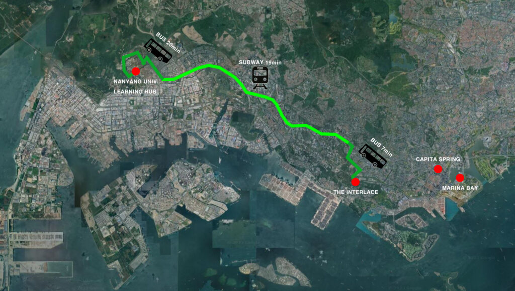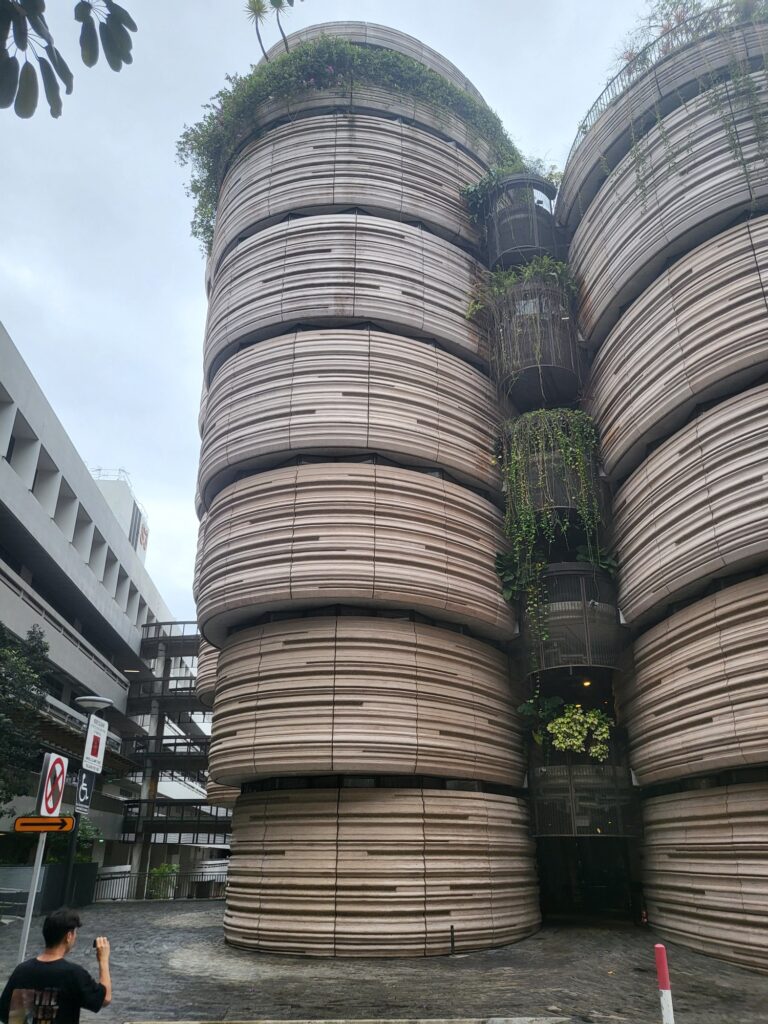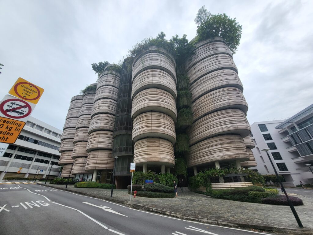 싱가포르에는 약 10개의 대학교가 있는데 그중 이 건축물을 보기 위해 난양대학교로 왔습니다. 난양대학교는 내부에 약 8개의 버스정류장이 있을 만큼 규모가 크고 경사가 급한 곳에 있어서 목적지에서 한 정류장 빨리 내리면 가파는 언덕을 걸어 올라가야 하는 참사가 생깁니다. 또한 등고 차이가 심하여 건물과 건물이 미로처럼 연결되어 있었고 구경하고 싶지 않은 곳도 의도적이지 않게 구경하게 되는 경우도 많았습니다.