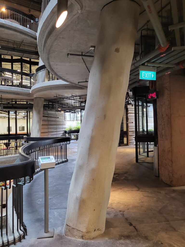 개인적으로는 아래에서 위를 바라본 모습이 마치 거대한 숲속에 들어와있는 웅장함이 들었습니다. 그리고 의외로 외부공간과 직접적으로 연결되다 보니 사람들의 소음이 금세 외부로 빠져나가 공부하기 위해 최적의 컨디션이 된다고 생각이 들었습니다. 비록 난양기술대학교의 내부가 복잡하지만 하루 동안 충분히 구경할 만한 공간이라고 생각되었습니다. 비록 우기여서 내부 공간도 습하고 더웠지만 나중에 꼭 좋은 날씨에 방문해 보고 싶었고 이곳에서 공부해 보고 싶다는 생각이 들었습니다.