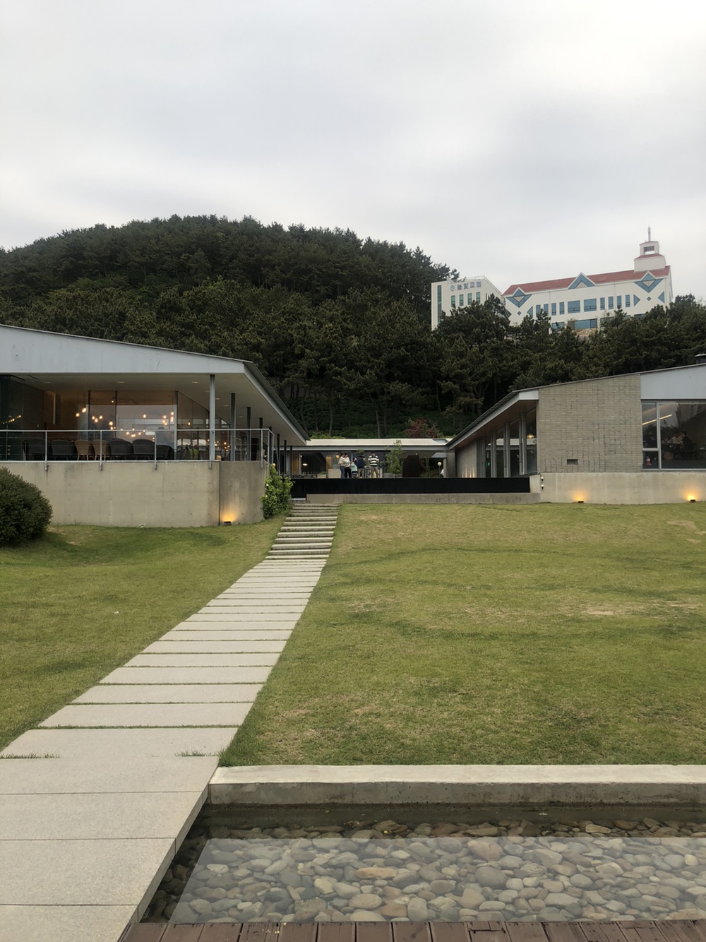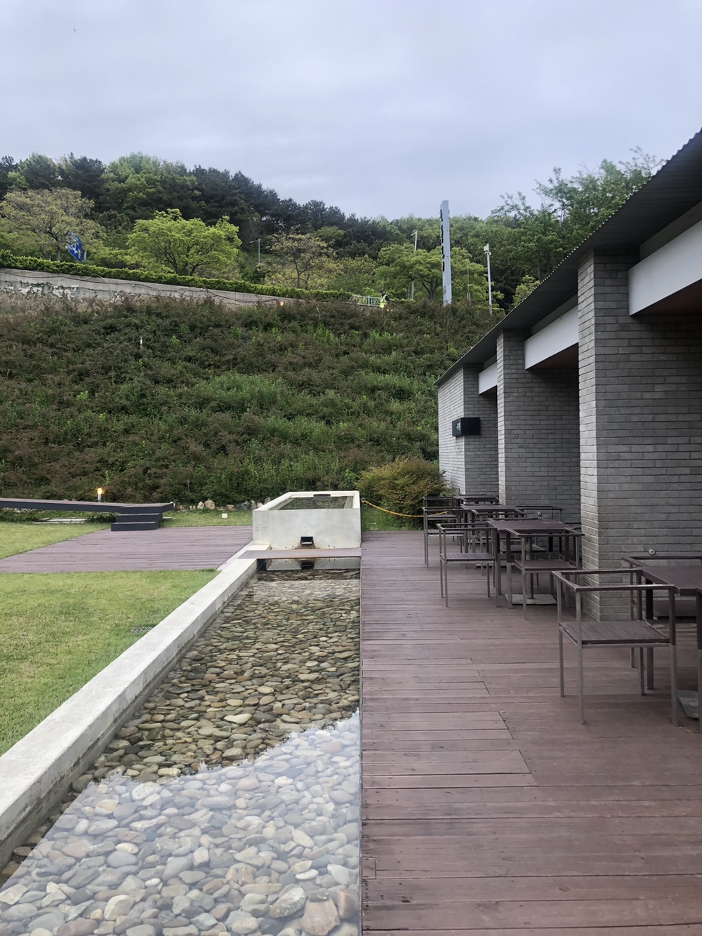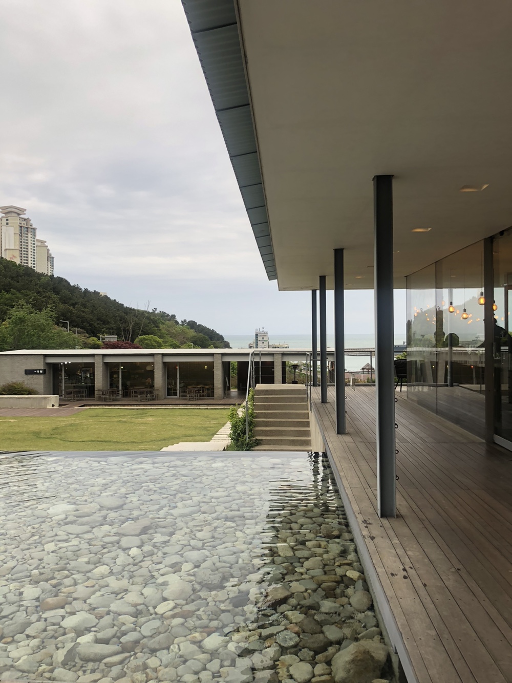 카페와 공간들이 백운포의 자연과 잘 어우러져 있었다. 또 수공간과 횡적인 느낌을 주는 처마가 조화를 이루어 자연을 팽창시키고 자연스럽게 이어 들어오게 하는 모습이 인상적이었다.