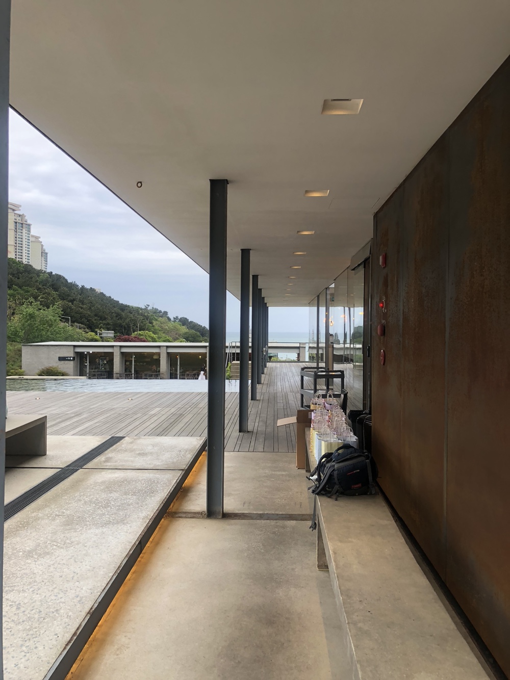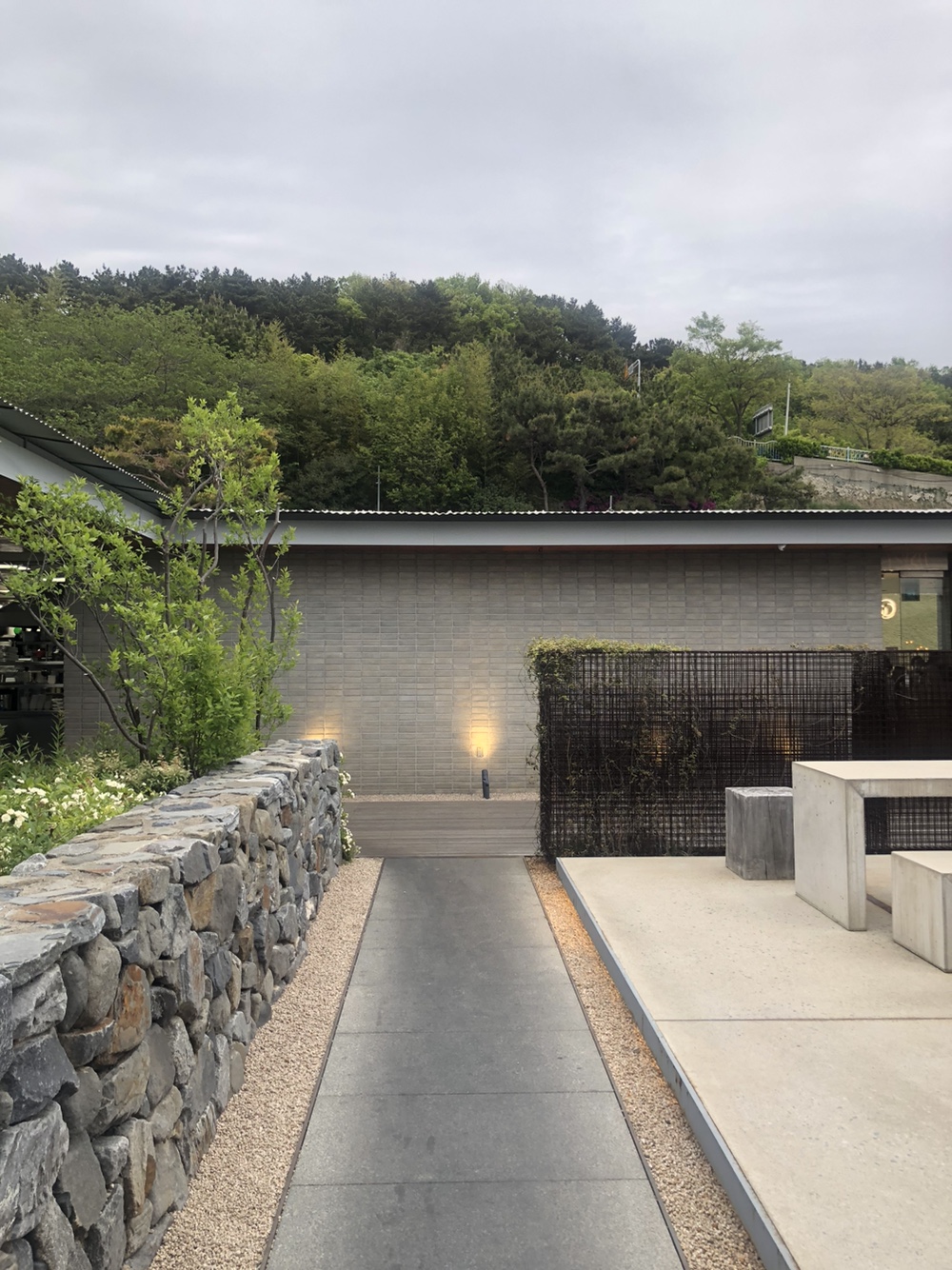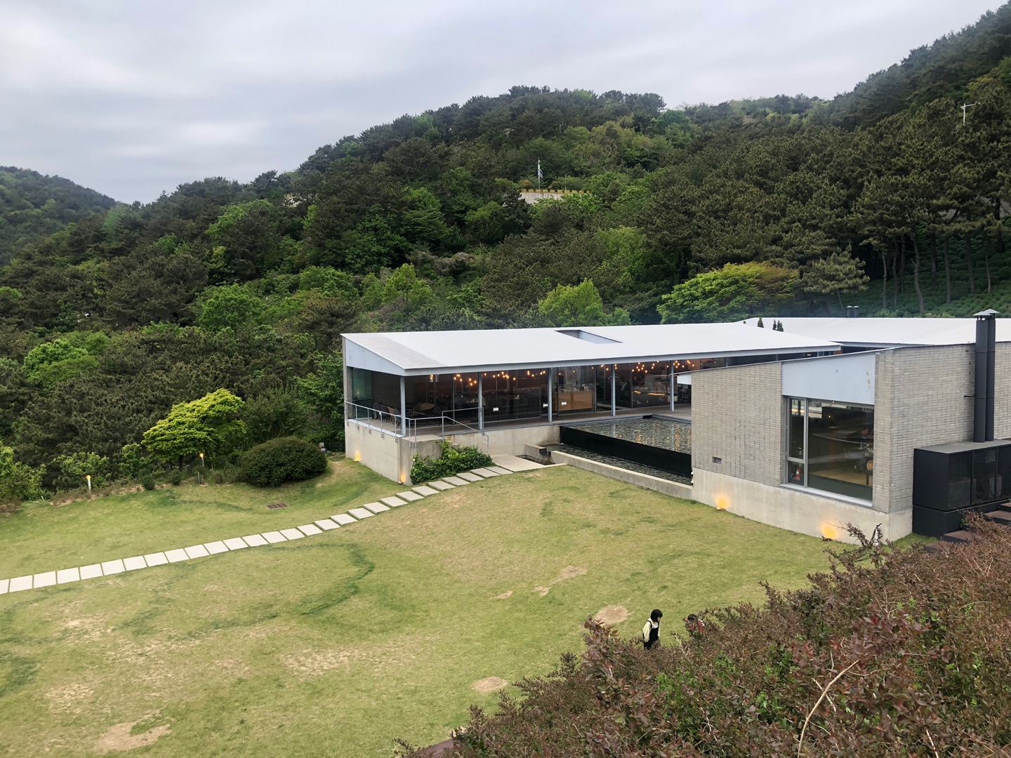 카페와 공간들이 백운포의 자연과 잘 어우러져 있었다. 또 수공간과 횡적인 느낌을 주는 처마가 조화를 이루어 자연을 팽창시키고 자연스럽게 이어 들어오게 하는 모습이 인상적이었다.