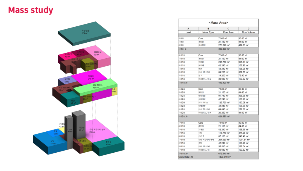 설계 진행 4 _ 3D 조닝 및 면적표 정리하기