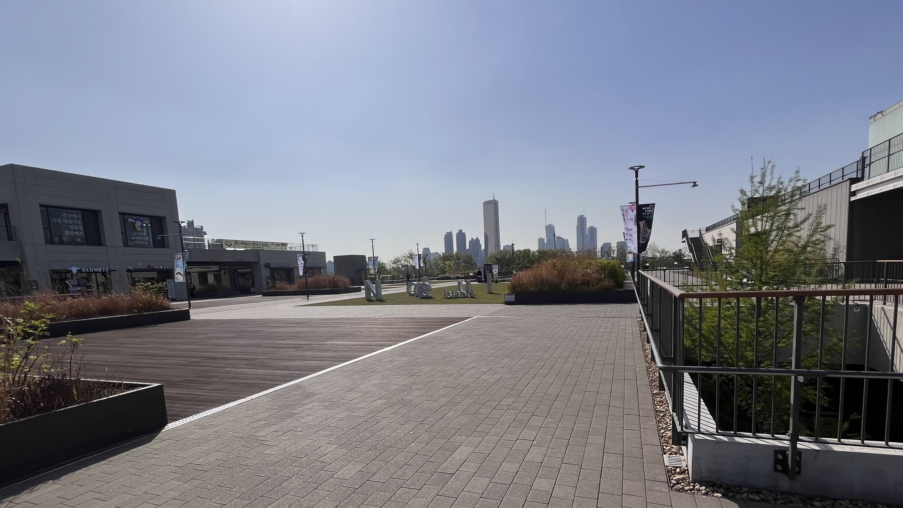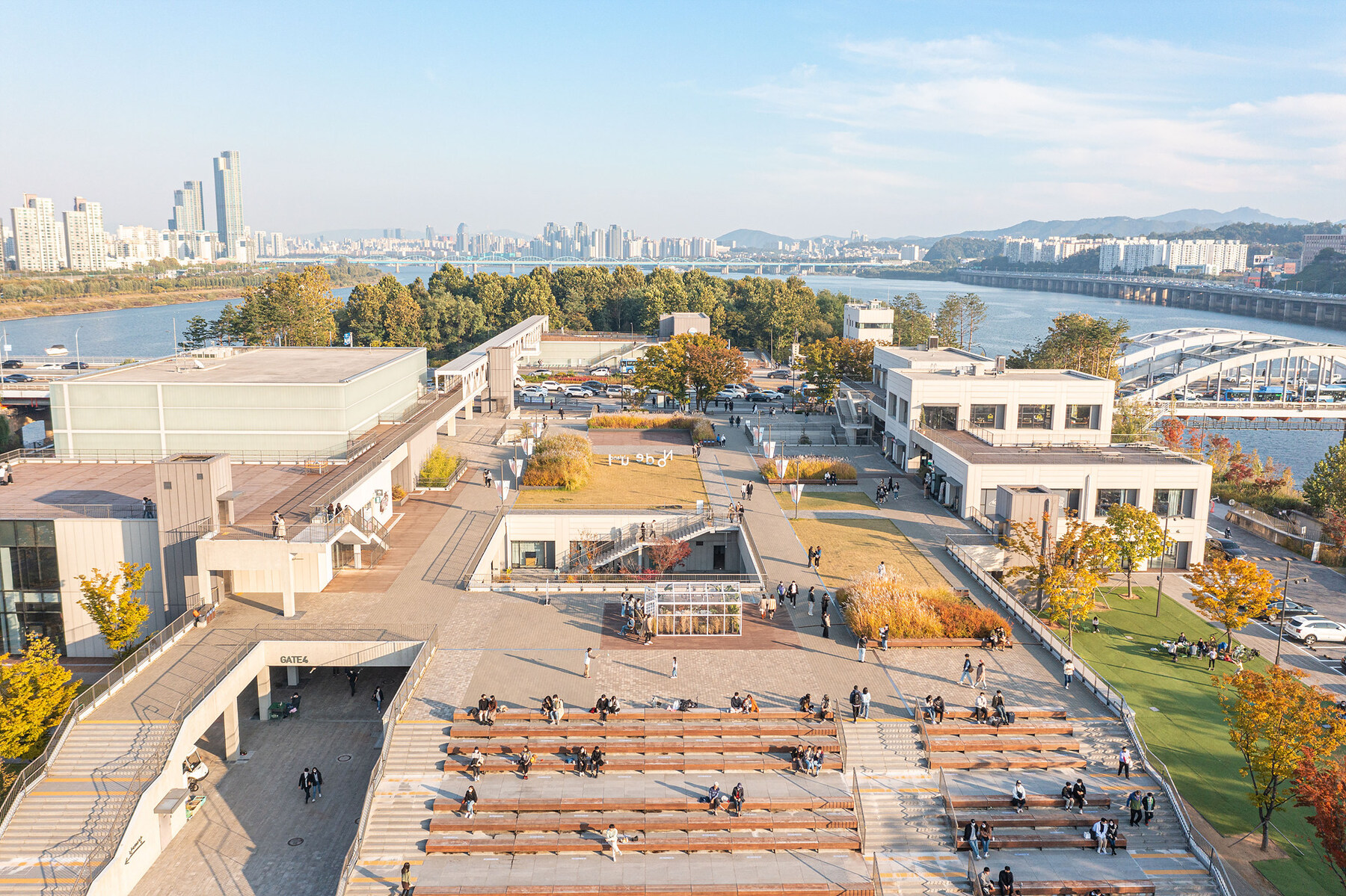 계단을 따라 올라가면 가운데의 NODEUL 구조물이 세워진 노들 스퀘어를 중심으로 건물이 좌, 우로 크게 나뉘어 있는데 시야를 가득 채우는 건물이나 구조물이 없어서 탁 트인 듯한 느낌을 준다.