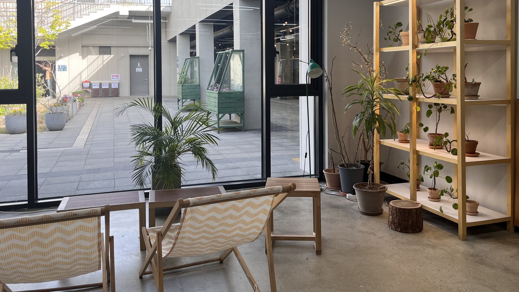 뒤로 누울 수 있는 의자를 통해 쉼을, 높은 의자와 책상을 통해 소소한 대화의 공간을, 분리된 공간에는 회의용 책상과 의자를 두어 미팅과 공부를 할 수 있도록 한 점이 인상 깊었다. 다양한 목적을 가진 사람 모두, 일상적으로 이용할 수 있도록 공간을 구성한 점이 좋았다.