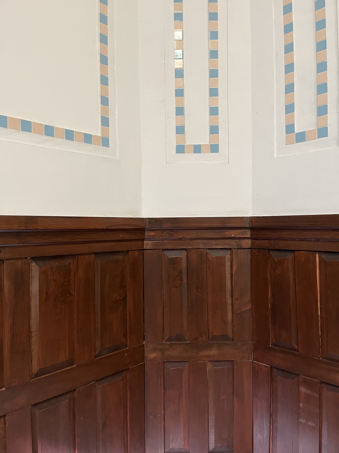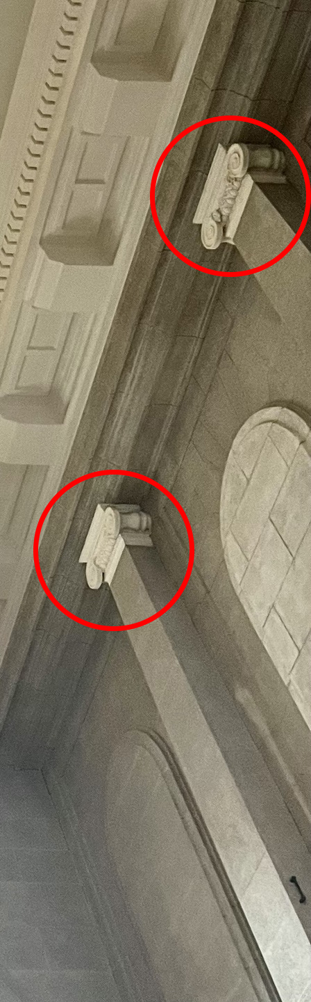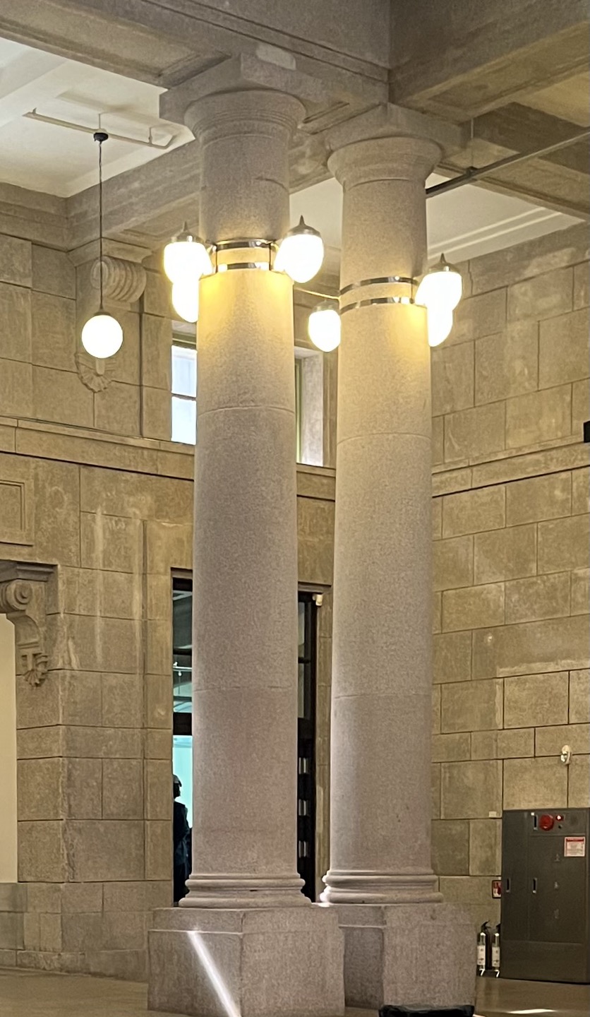먼저 중앙홀을 보면 대칭을 이루고 있는 것을 확인할 수 있었다. 1층에는 양쪽에 기둥이 6개씩 대칭으로 있었는데 1층 기둥은 르네상스 도리스 양식이고 2층은 이오니아 양식 기둥이다. 이오니아 양식은 도리스 양식보다 약간 더 부드러운 곡선과 장식적인 요소가 많다는 것이 특징이다. 기둥들은 화강암으로 이루어져 있었는데 원래라면 대리석을 쓰는 것이 일반적이었겠지만 당시 비싼 대리석의 가격으로 인해 국내에 많았던 화강암으로 대신한 것 같다고 해석해 주셨다. 이 당시 공사기간은 약 3년 반, 예산은 현재 시세로 했을 때 200억이 넘는 대규모 공사였다는 말을 듣고 정말 놀랐다.