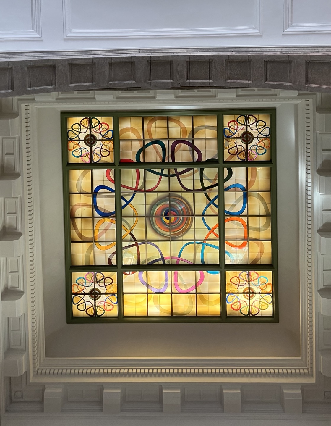 천장에는 가로 8m 세로 8m인 정사각형 형태의 스테인드글라스가 있다. 이 스테인드글라스의 문양은 3번이나 바뀐 것으로 현재 있는 문양은 우리 전통 강강술래를 형상화해서 디자인한 것이다. 원래 과거 1925년 준공 당시의 스테인드글라스는 6.25전쟁으로 돔의 일부가 피해를 입으면서 파괴되었다. 이후 전후 복구 과정에서 유리 위에 ‘봉황과 태극 그리고 무궁화’로 채색된 그림이 천장에 그려졌다가 2011년 문화역서울284를 개관하면서 새롭게 만들어진 것이 지금의 모습이다.