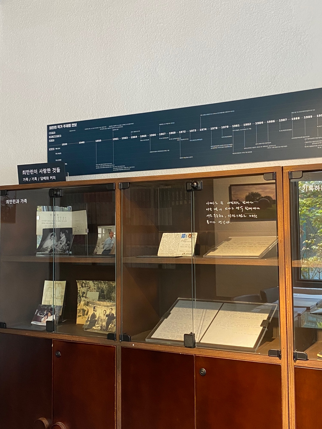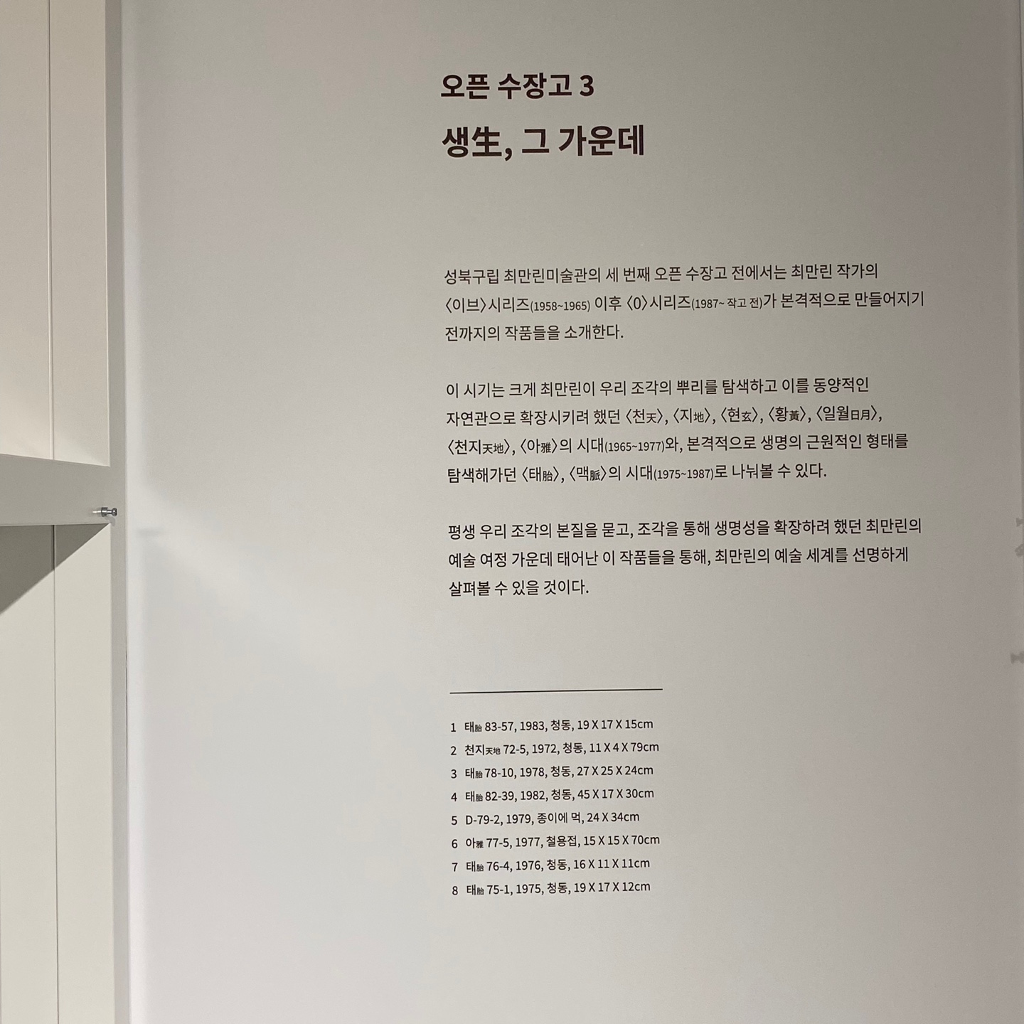 2층은 전시와 최만린 작가님에 대한 설명을 볼 수 있는 두개의 방으로 구성되어 있었다. 작가님의 삶의 일대기와 영상도 볼 수 있어 작품이나 작가님에 대한 이해를 도와줬던 공간들이었다.