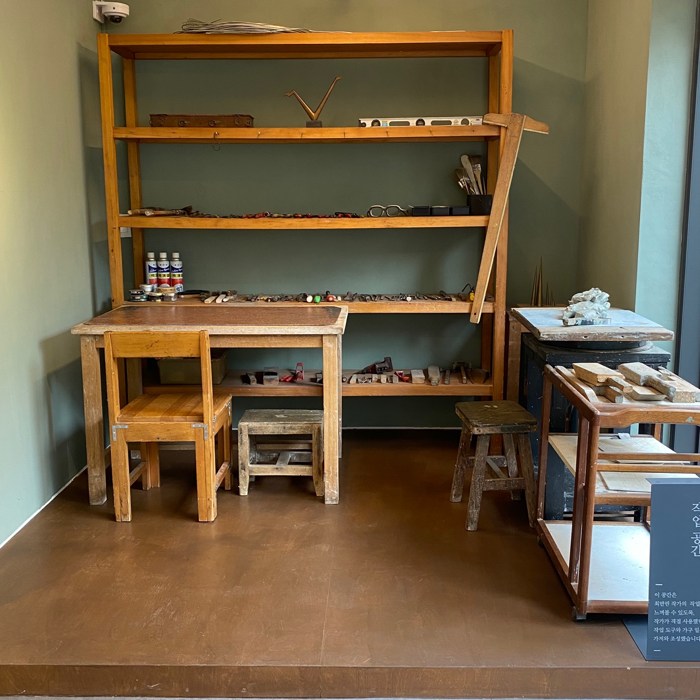 현재는 작업실로 사용하진 않지만 아직 활동 중인 작가님 이셔서 매번 전시마다 다른 작품을 전시하다 보니 이곳에 별도의 공간을 마련해서 작품들을 보관하는 용도로 방을 사용하고 계신다고 했다. 설명도 쓰여 있어서 작품에 전시 외에 작품도 흥미를 갖고 관람할 수 있었다.