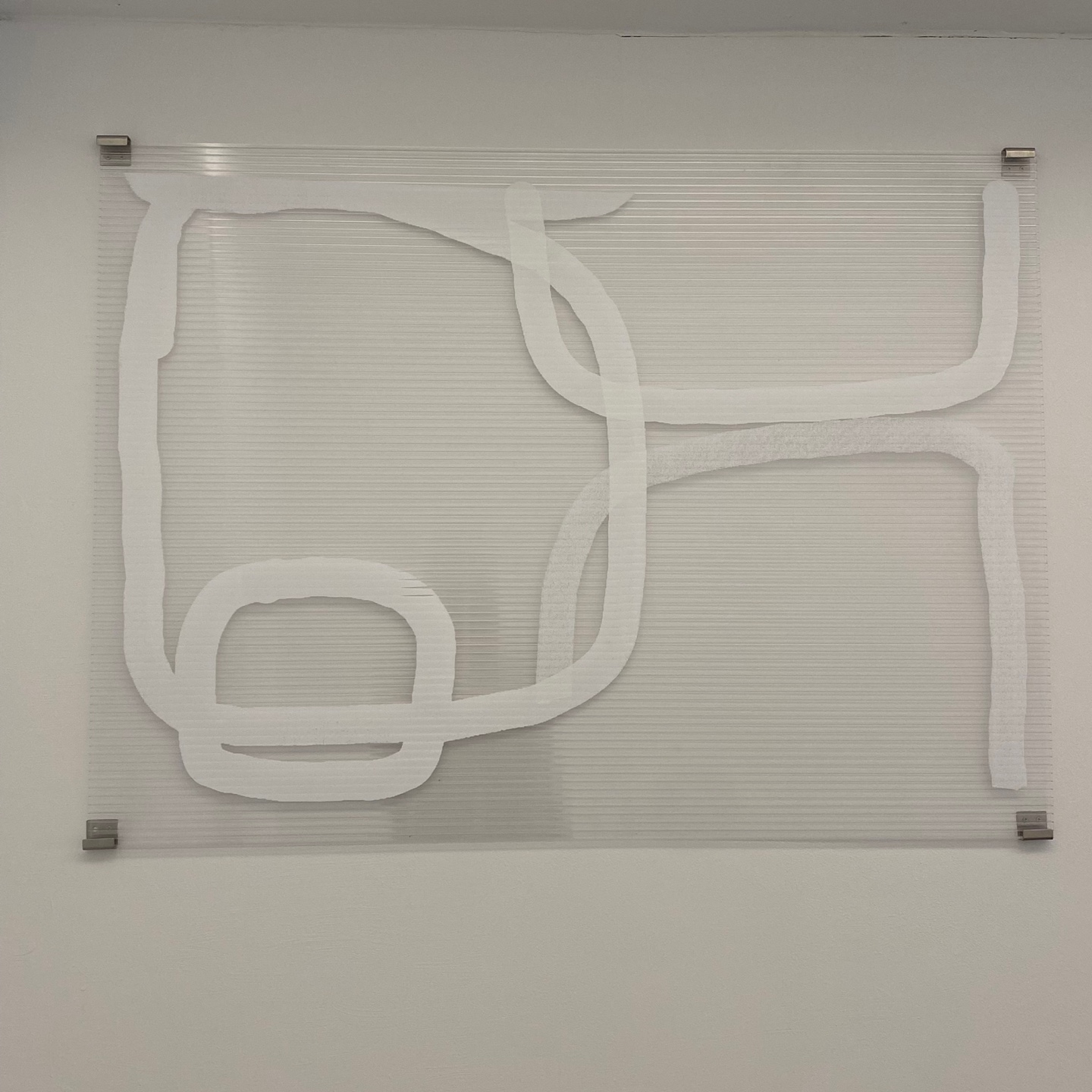 가장 먼저 관람한 작품은 크리스 로의 작품이었는데 아크릴 위에 그린 작품이었다. 매우 단순한 선과 단순한 형태의 도형으로 이루어진 작품인데 감성이 있어서 한참 바라본 것 같다.