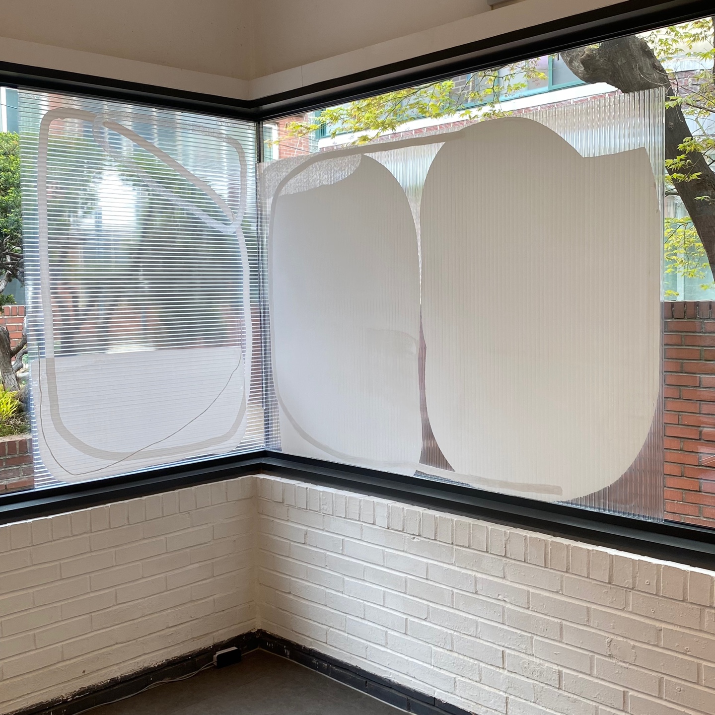 사진으로도 보이다시피 창문의 모서리를 이용하는 등 공간이 활용된 모습을 바라보는 것이 작품을 관람하는 것과 더불어 더 큰 재미를 주는 미술관이다. 처음에 멀리서 작품을 바라보았을 때는 다 똑같아 보였다. 그러나 가까이서 전시에 사용된 각기 다른 소재에서 모두 다르게 표현되는 모습의 선과 도형을 바라보고 있으면 불규칙 속의 규칙이 보이는 것 같은 기분이 들어 묘했다.