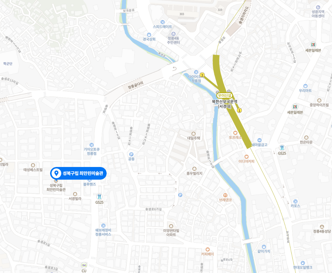 최만린 미술관은 지하철 북한산보국문역 2번 출구 혹은 버스를 이용한다면 북한산보국문역 1번출구 정류 장에서 도보 5분 정도로 방문 가능하다. 별도의 주차 공간이 마련되어 있지 않은 곳이라 도보나 대중교통 방문을 추천한다. 전시는 올해 6월 3일까지 무료로 관람할 수 있다.
