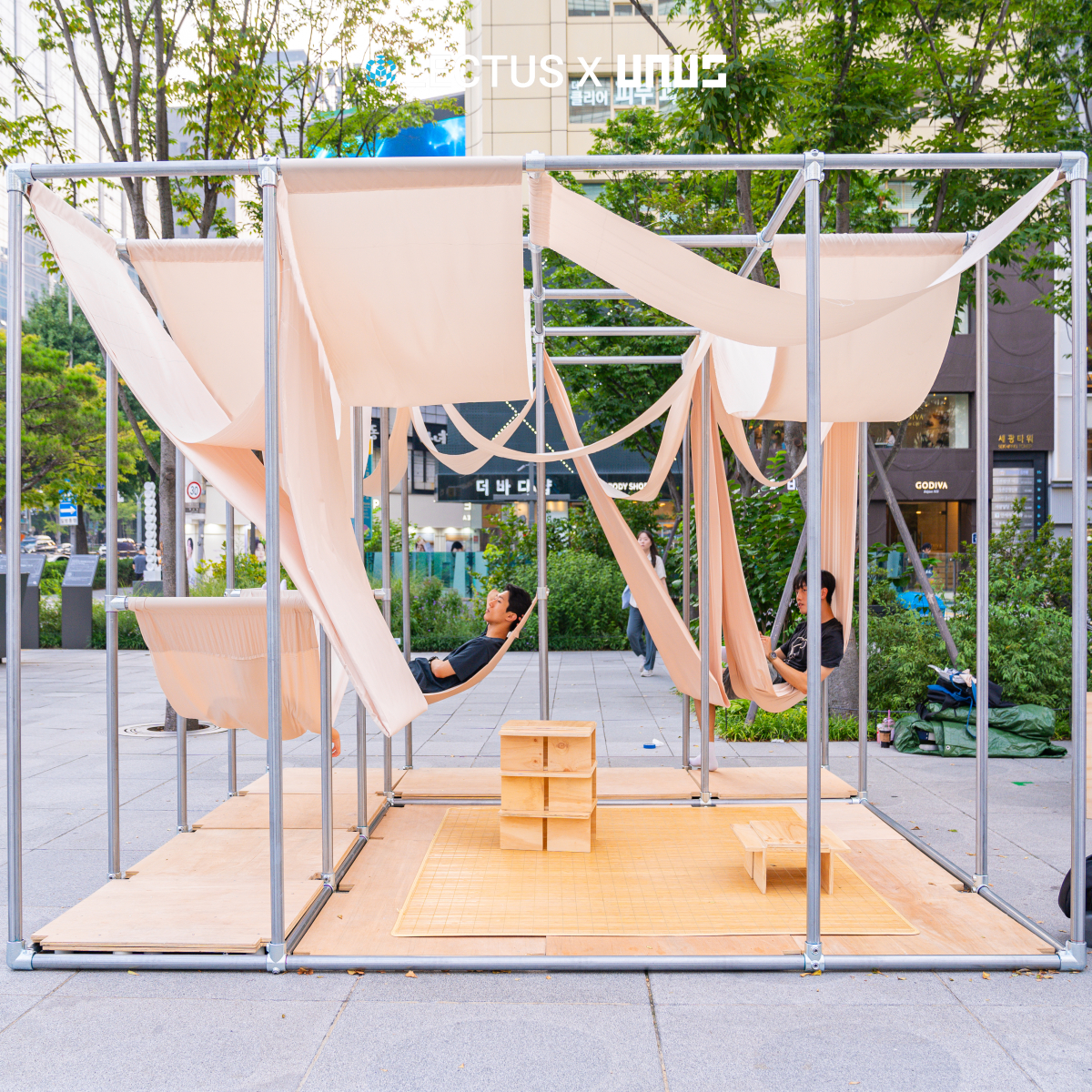 사람마다 사용하는 침실의 환경과, 침대의 높낮이, 크기가 다르듯이, 이 파빌리온도 사용 인원에 따라 다양하게 사용할 수 있도록 설계되었다. 각 해먹, 의자 유닛들에서는 이용자들이 각기 다른 휴식의 형태를 체험할 수 있으며, 사용자마다 유동적으로 선택, 조절하여 사용할 수 있게 하였다.