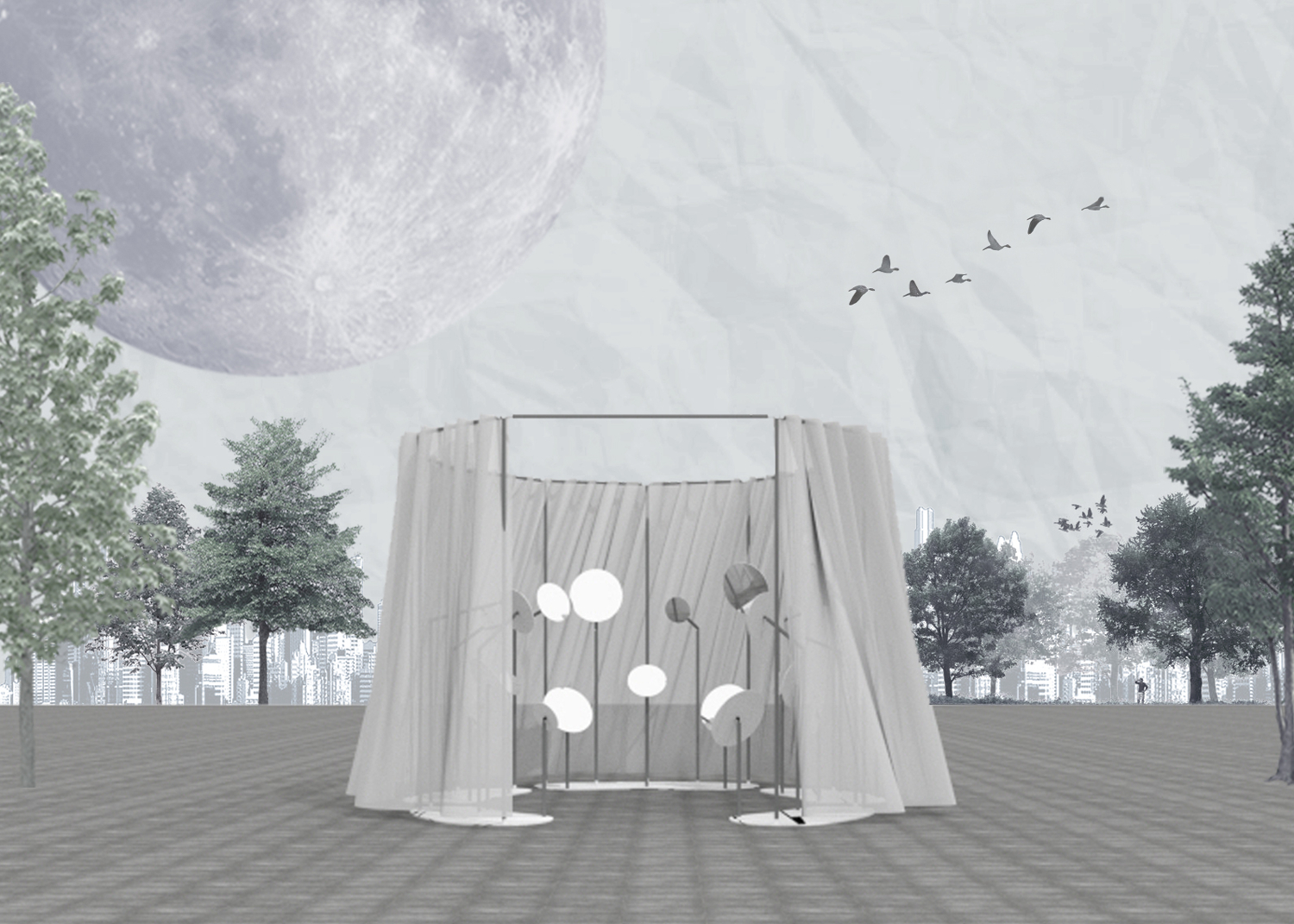 우리는 틈을 통해 거실을 재구성하고자 한다. 벽이 바닥으로부터 분리되며 바닥 틈이 생긴다. 그 틈으로 벽이 떨어져나간 흔적인 쇄석이 남아있고 식생이 들어온다. 벽도 해체되어 틈이 생긴다. 그 틈으로 사람들이 드나들고 외부의 움직임, 풍경 등 환경들이 보인다. 벽의 외피도 떨어져 나가며 천장에 틈이 생기고, 바람과 빛이 들어온다. 빛은 내부 천에 번지며 은은하게 퍼진다. 사용자는 중앙 의자를 돌리면서 거실의 일방향성을 깨보고 다양한 틈을 즐기며 거실을 재정의 할 수 있다.