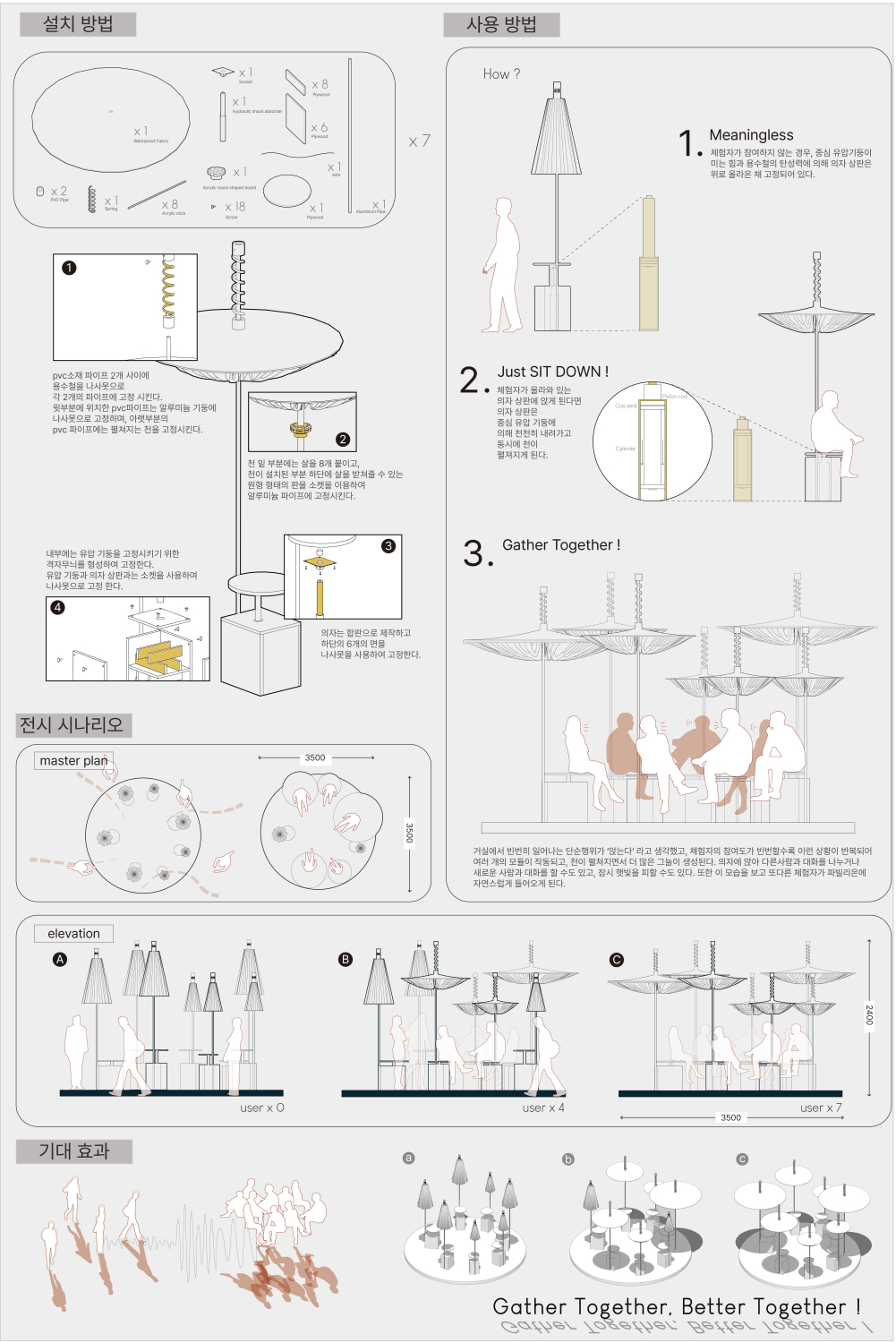 이처럼 사람들의 움직임에 유연하게 대응하는 파빌리온은 그 형상 변화를 시각적으로 그대로 드러내어, 사람들의 체험을 극대화 시킨다.