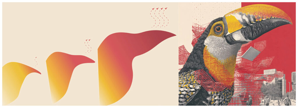 BIG BEAK 파빌리온은 열대 조류 토코투칸의 부리에에서 영감을 받은 생체모방 건축이다. 토코투칸은 기온이 오를수록 부리를 통해 열을 방출하며, 점점 비대해진 부리는 환경에 적응한 진화의 결과다.