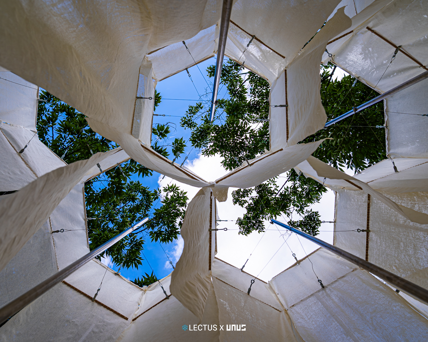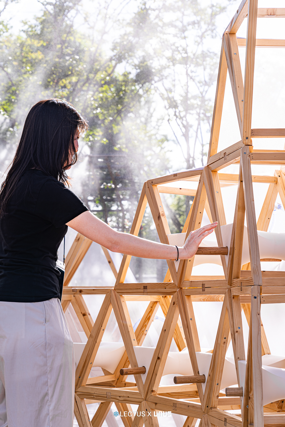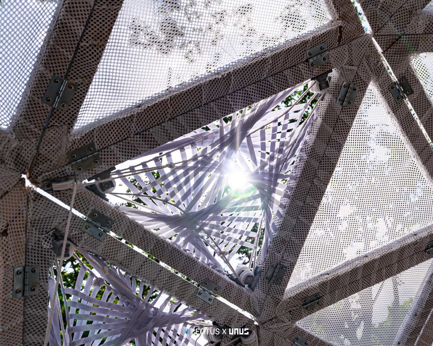 지오데식 돔 구조를 기반으로 다수의 삼각형 모듈이 연결된 형태로 구성되며, 각 모듈은 카메라 조리개와 유사한 규조의 실 패턴 시스템으로 작동한다. 이 삼각형 모듈은 손잡이를 당기는 방식으로 작동시킬 수 있으며 내부 사용자에게 그늘과 빛을 조절하는 공간적 체험을 제공한다.  사용자는 장치와의 상호작용을 통해 구조적 변화와 빛의 유입 차단을 경험하며, 마치 누에고치의 기공이 외부환경에 반응하듯 건축이 환경 자극에 따라 능동적으로 응답하는 과정을 상징적으로 재현한다.