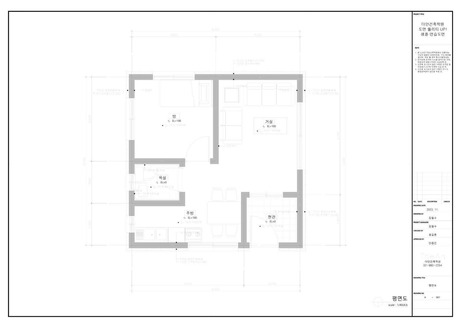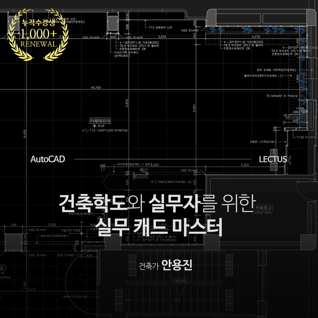 본 과정을 이수하신다면, 건축 설계의 기본이 되는 평면도부터 상세도까지 모든 실시 도면을 독자적으로 작성하실 수 있습니다. 도면 작성 원리가 막막했던 건축 전공 학생이나 실무 역량을 한 단계 높이고 싶은 취업 준비생 및 사무소 종사자분들에게 가장 확실한 성취를 약속합니다.