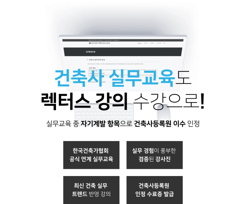 렉터스는 건축사 실무교육 중 [자기계발] 항목으로 인정 가능한 교육 기관입니다.